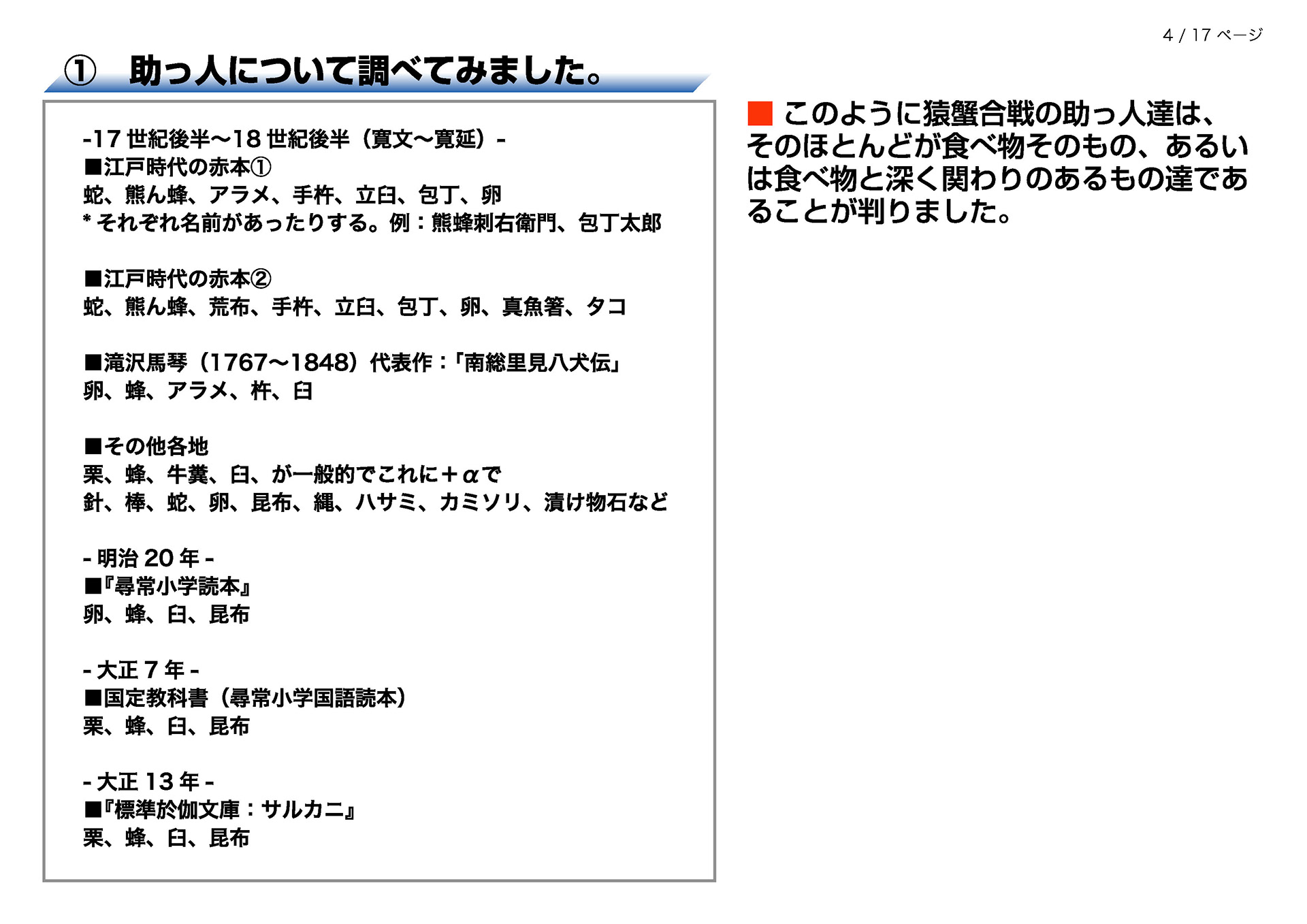 昔話『猿蟹合戦』と食育