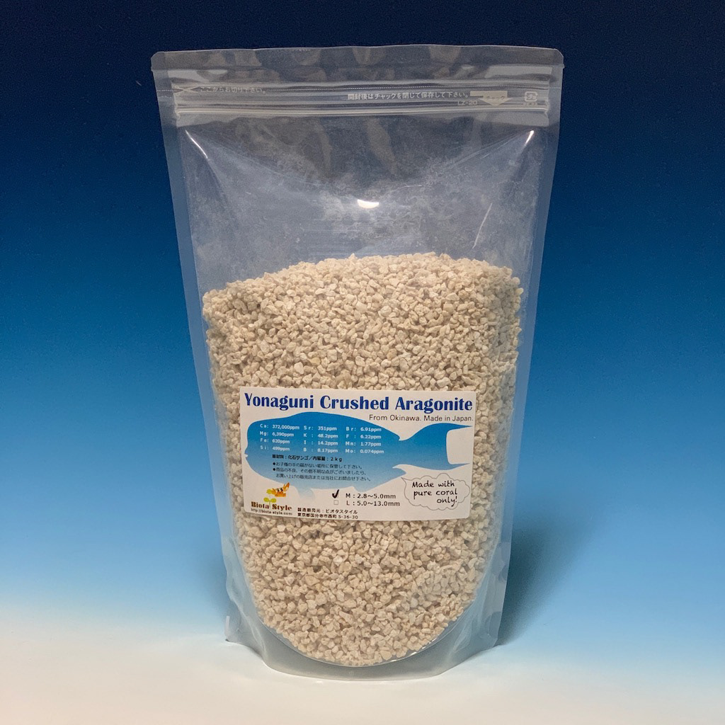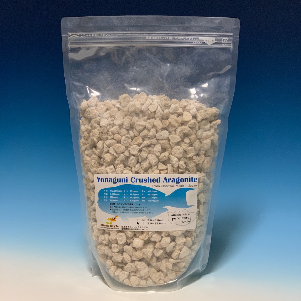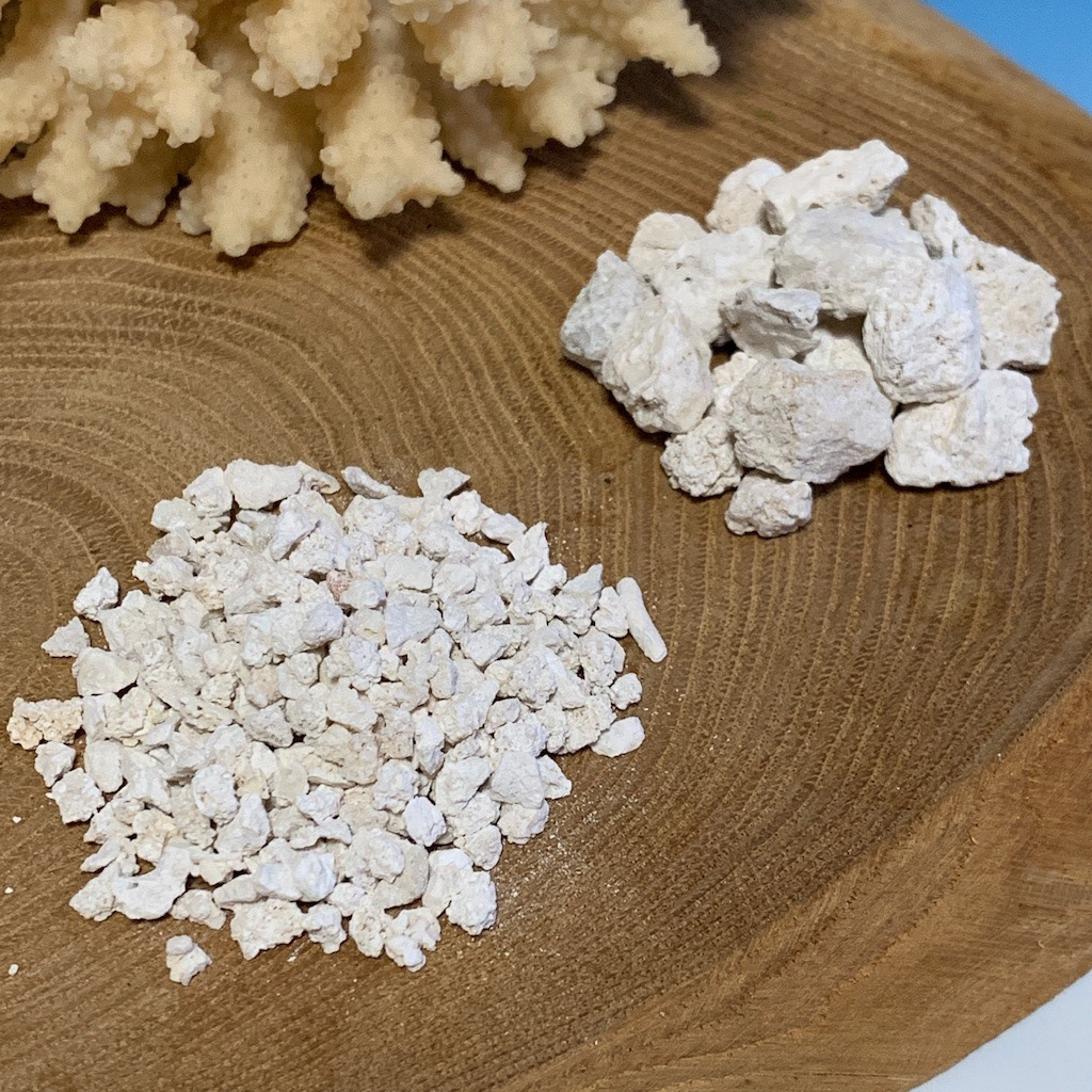 多孔質で溶けやすく、リーフタンクの底砂やカルシウムリアクターのメディアに導入することで、サンゴの生育に必要な成分をバランスよく補う事が出来ます。