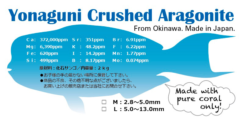 3年に及ぶ水槽実験では、底砂とリアクターメディアに使用することで、カルシウム、マグネシウムはもちろん、鉄、ストロンチウム、カリウム、ヨウ素、臭素、マンガン等、サンゴ飼育に欠かすことができない成分のバランスが適正に保たれることを確認いたしました。
